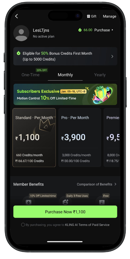 - Download the Kling AI mobile app. Link => https://pro.klingai.com/h5-app